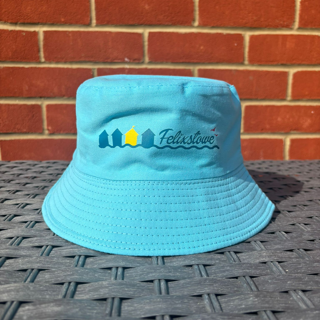Adult bucket hat in Blue with ‘Felixstowe’ carnival logo.